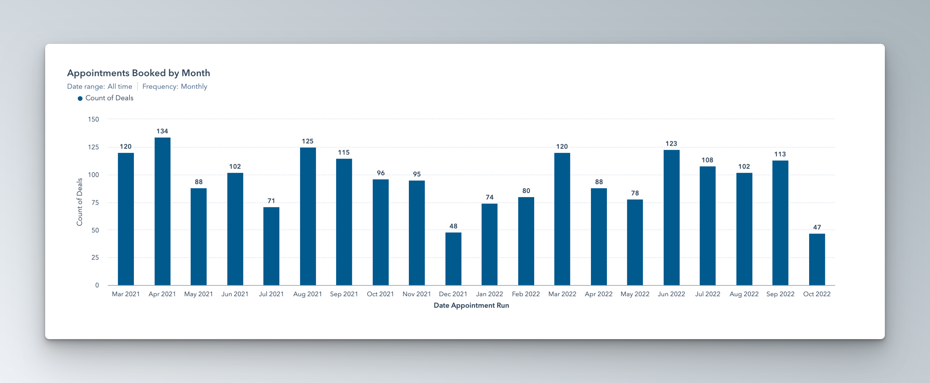 Because if you have a steady conversion rate on booked appointments, it means that booked appointments are largely going to dictate your monthly sales.