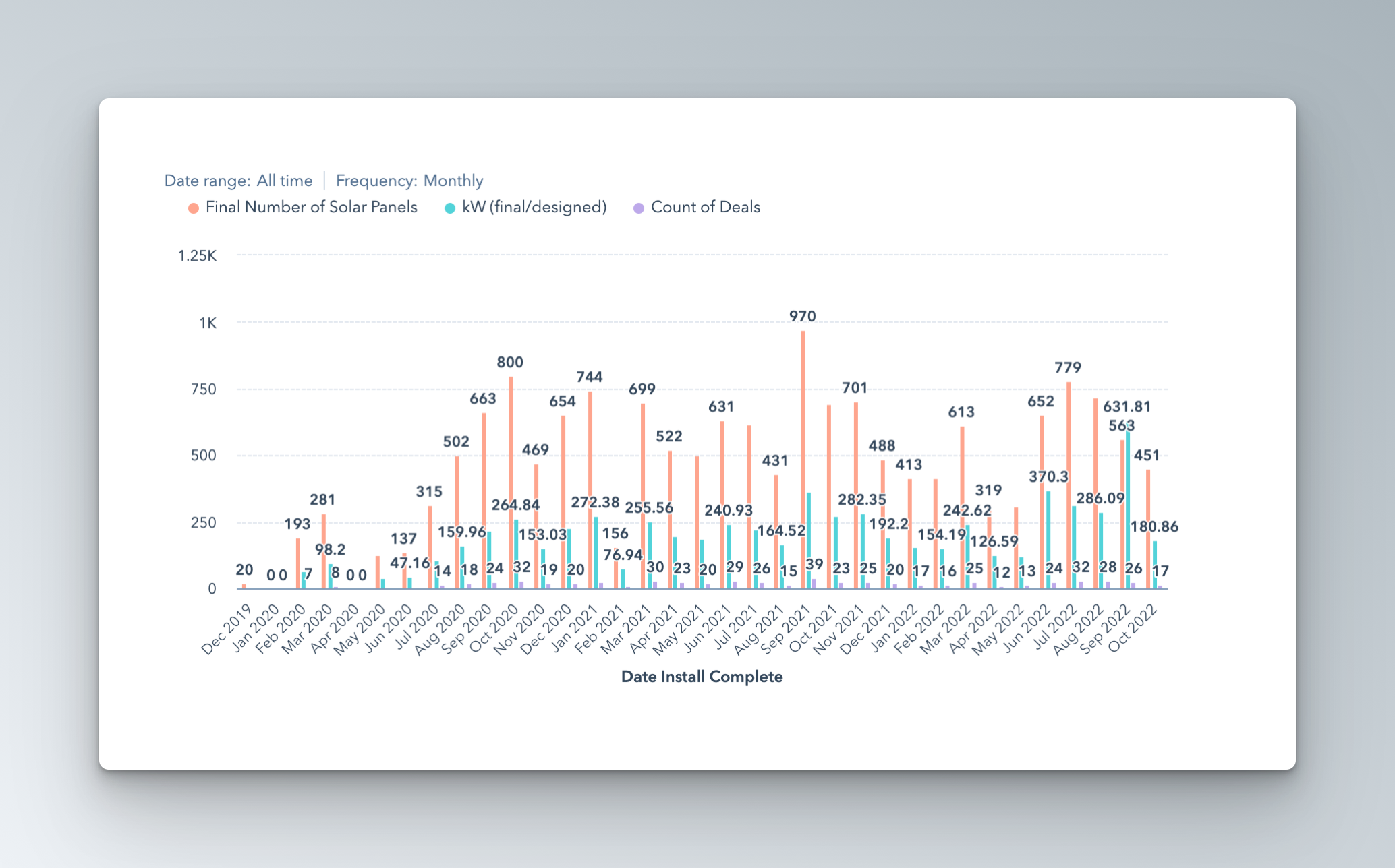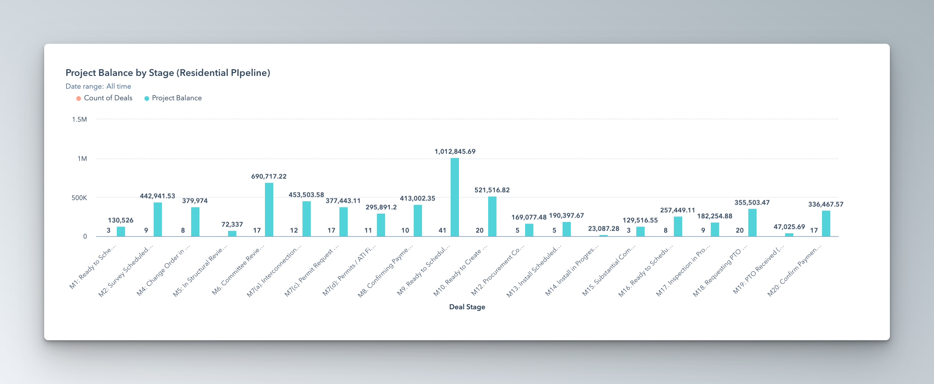 Most solar companies have a sense for their backlog, but using HubSpot you can make this report automatic and dynamic, so it changes as new sales come in and old projects move on.