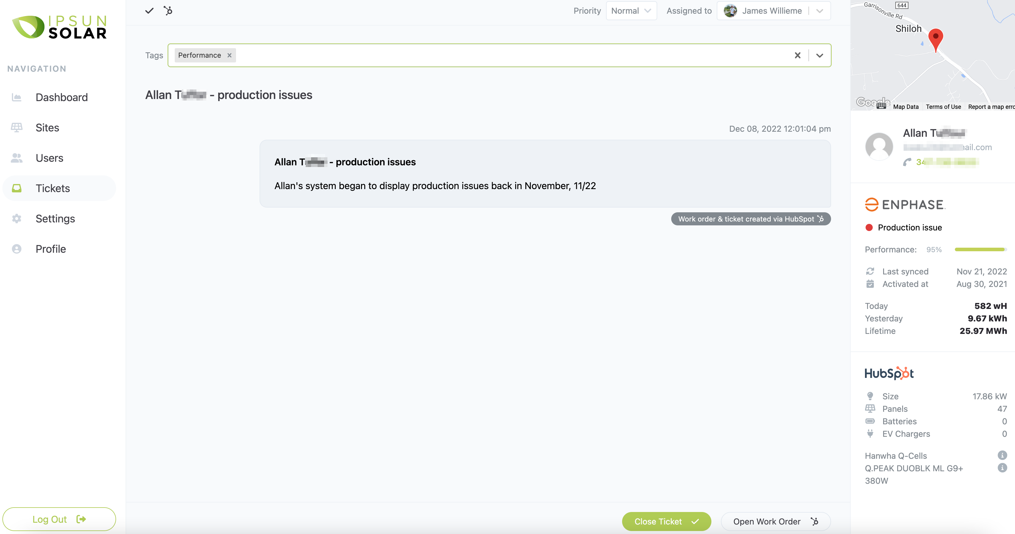 We can automatically create tickets for new errors as they pop up, and even create tickets for problematic systems that don't show any direct inverter error. We can tell your team which systems have been taken care of, and which ones are not addressed yet.