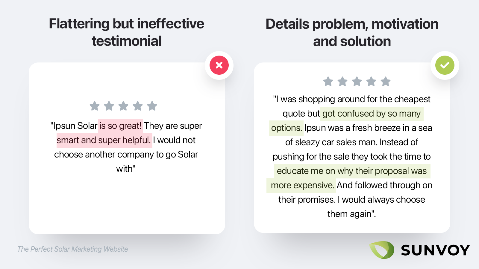 Aún mejor. Las palabras son baratas. Las pruebas cuestan. Añade testimonios de clientes que demuestren lo que dices después de cada sección en la que haces una afirmación fuerte.