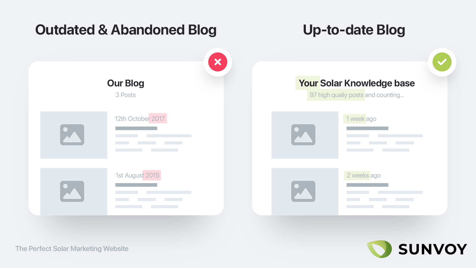 Si solo publicas muy de vez en cuando posts de alta calidad o tienes unos pocos que posicionan en Google, elimina la fecha de publicación o muestra "última actualización" y actualízalos con regularidad con información nueva.